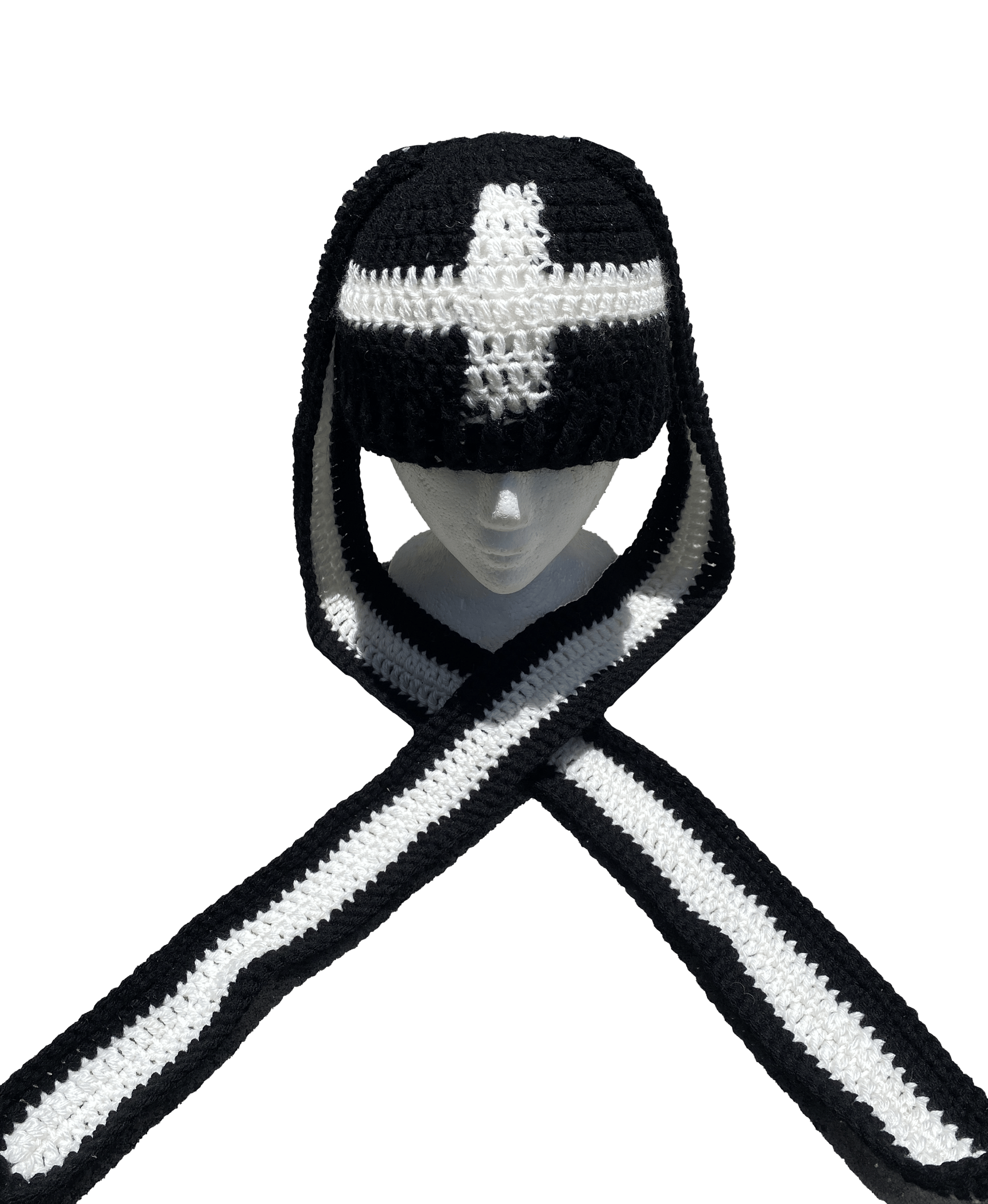 ☆ Custom Made "†" beanie. Cross hat with extra extra long Bunny ears.
